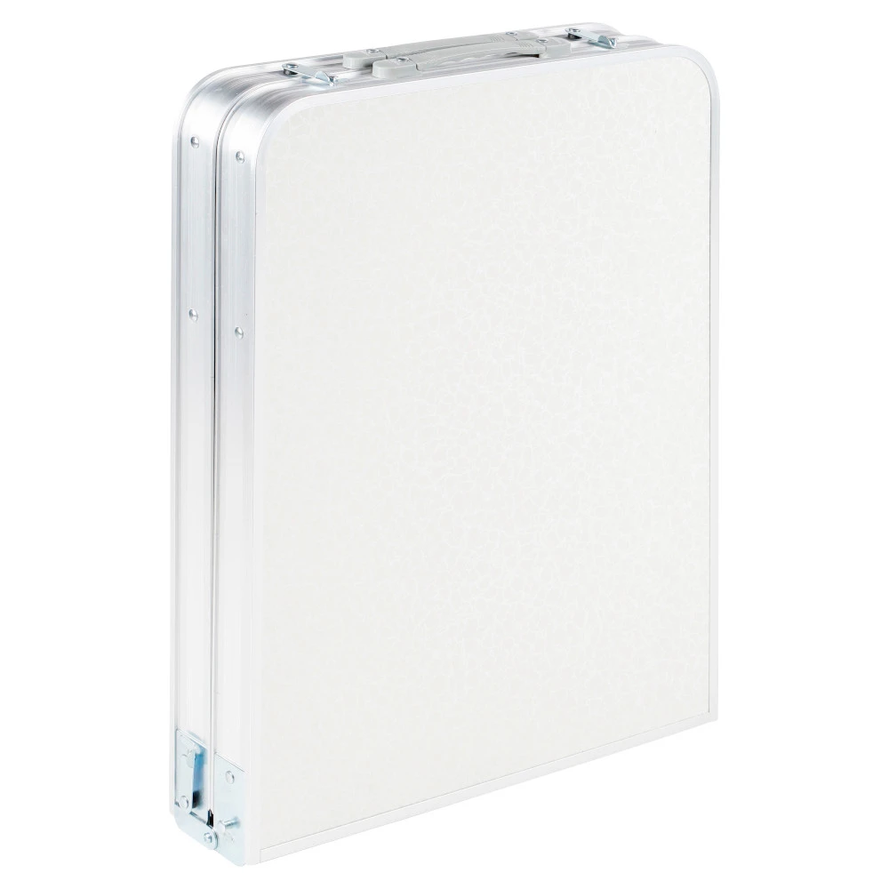 Der handliche Campingtisch hat ein stabiles Aluminiumgestell und eine standfeste MDF-Platte mit Alu-Kante. Dank seiner geringen Abmessungen kann man den Klapptisch überall hin mitnehmen und leicht aufstellen. Bei Nichtgebrauch lässt er sich zusammenklappen und platzsparend verstauen. Darüber hinaus verfügt der Tisch über einen praktischen Aufbewahrungstasche aus Polyester und eine maximale Belastbarkeit von 25 kg. Der Campingtisch ist 2-fach höhenverstellbar.