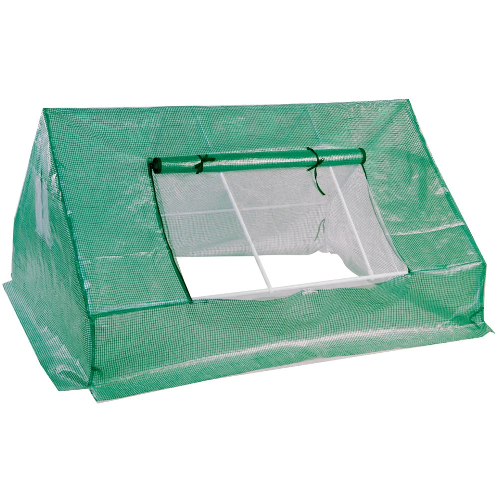 Dieses praktische Gewächshaus, mit den Maßen 180 x 142 x 30 bis zu 93 cm, verfügt über einen stabilen Stahlrahmen und ist für den Schutz von Jungpflanzen bestens geeignet. Die PE-Gewebefolie in grün sorgt dafür, dass ausreichend Licht eindringen kann. Das seitlich angebrachte Klarsichtfenster ist hochrollbar, mit Insektenschutz ausgestattet und ermöglicht eine gute Luftzirkulation im Treibhaus. Das Gewächshaus kannst du auch als Abdeckplane für Frühbeete verwenden.