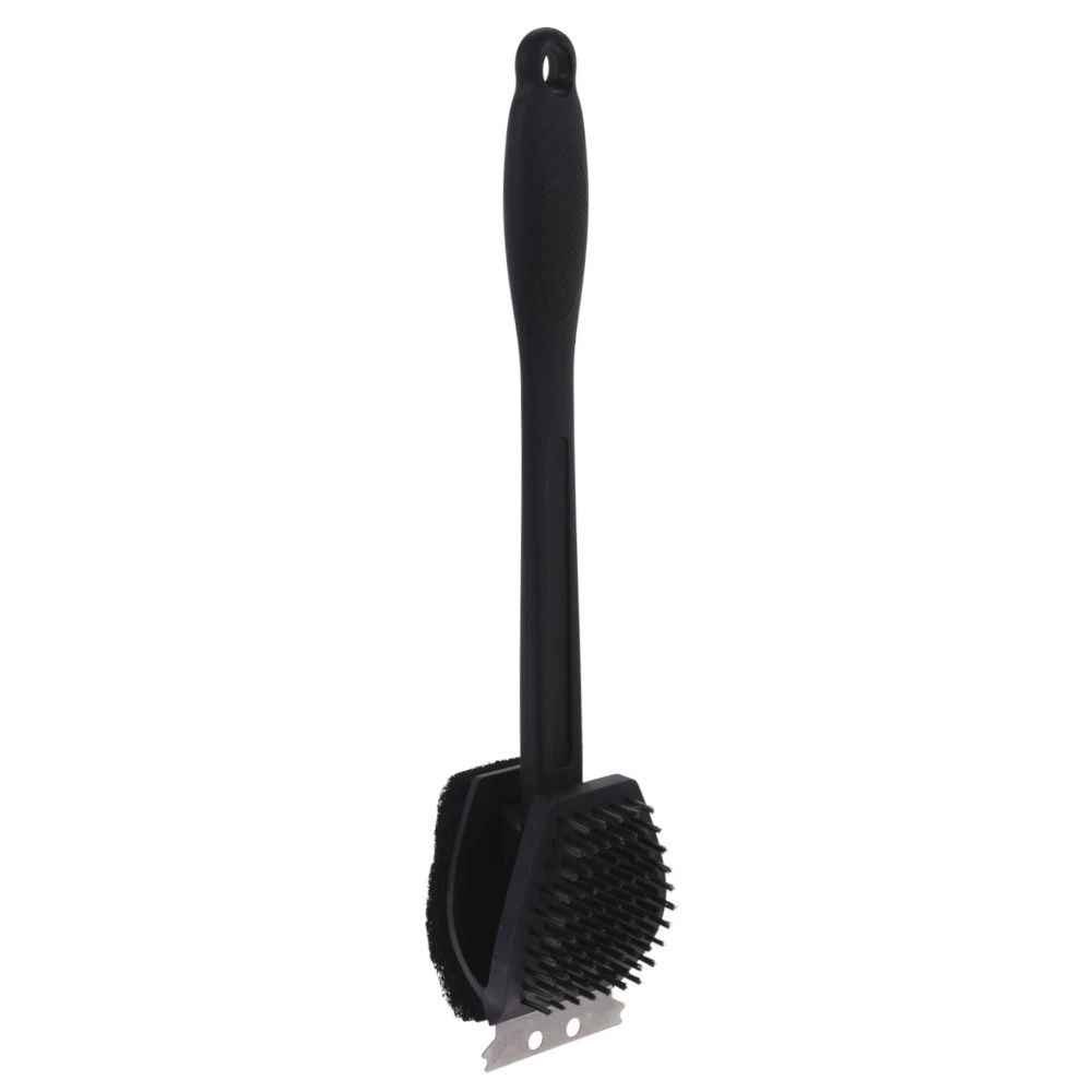 Grillbürste 3in1 38 cm aus schwarzem Kunststoff mit Öse