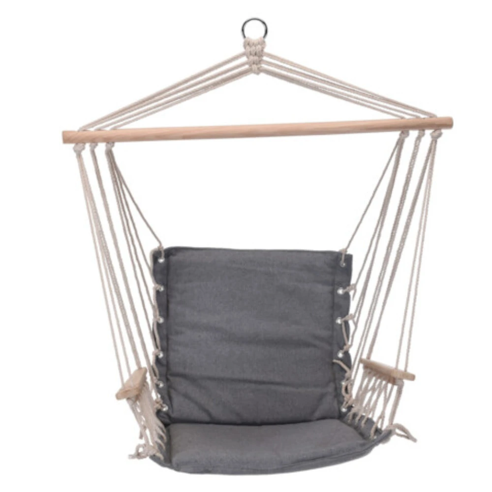Hängesessel aus Baumwolle in Grau mit Armlehne aus Holz