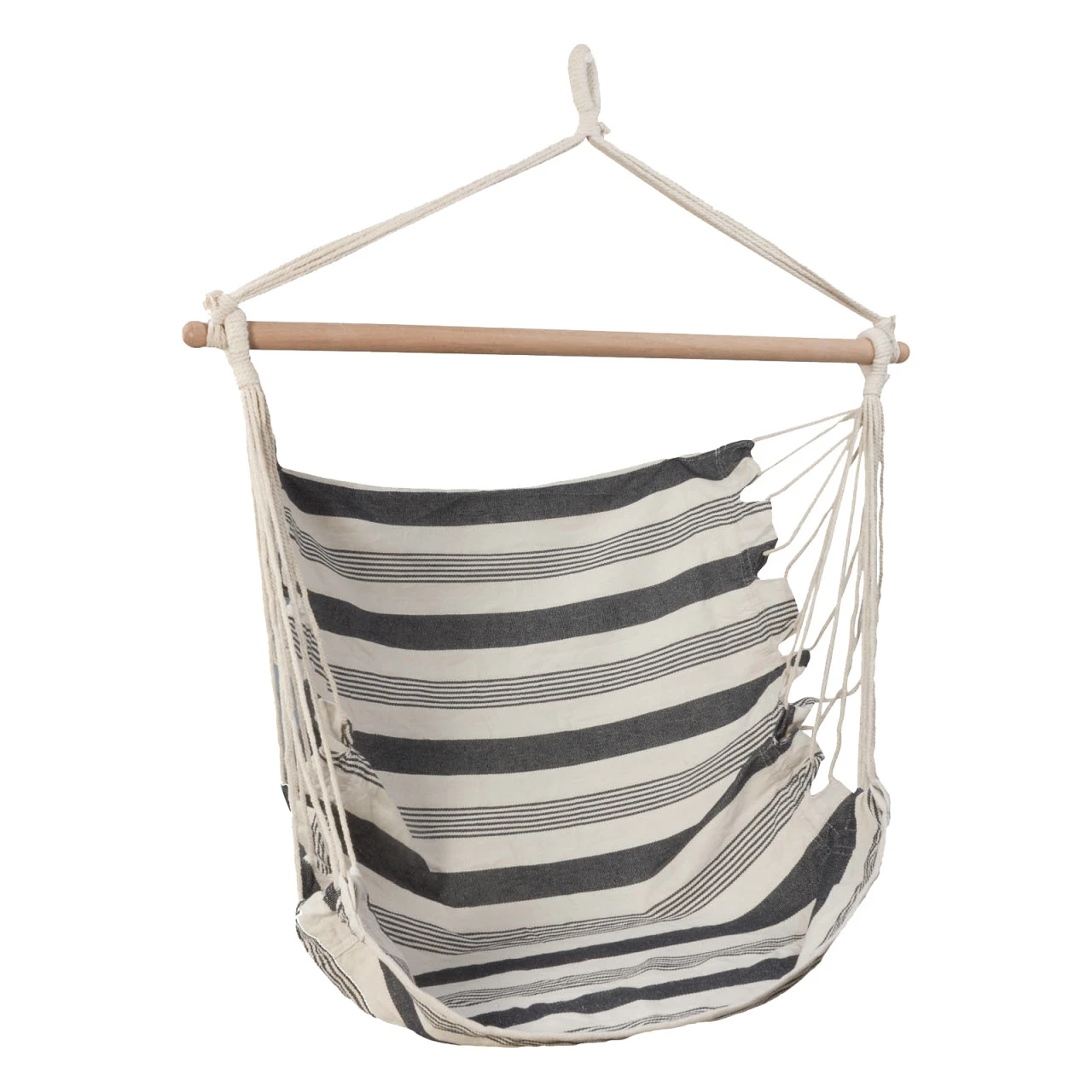 Der Hängesessel aus Polyester lädt nach einem anstrengenden Tag zur Entspannung im Garten, Terrasse oder Balkon ein. Die fröhlichen Farben und das schöne Streifenmuster machen diesen Hängesessel zu einer schönen Hängeliege in deinem Garten.