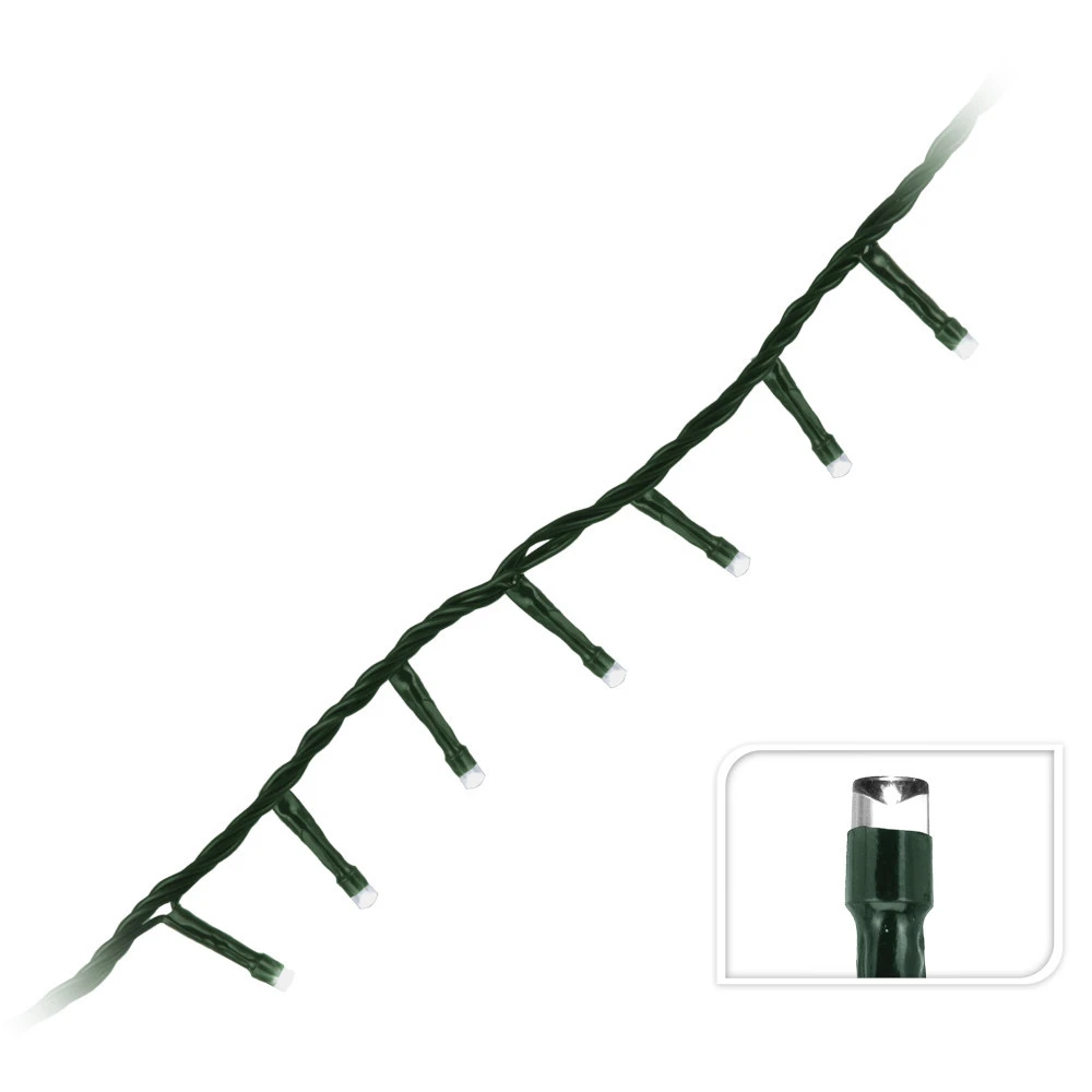 Die LEDs strahlen in weißer Farbe, sind langlebig und sparen Energie. Ein weiterer Vorteil von LED-Lichtern besteht darin, dass diese während der Nutzung nicht heiß werden. Nach Gebrauch kann die Lichterkette platzsparend zusammengerollt bis zum nächsten Einsatz verstaut werden.