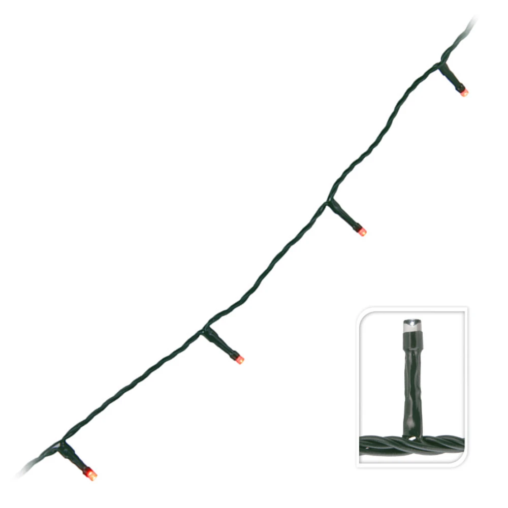 Die Lichterkette mit rotleuchtenden LEDs eignet sich besonders für stimmungsvolle Dekorationen im Innen- und Außenbereich und das nicht nur zur Weihnachtszeit. Verwenden Sie die LED-Beleuchtung auch für den Weihnachtsbaum im Wohnzimmer sowie für den Tannenbaum im Garten. Diese LED-Lichterkette ist vielseitig einsetzbar, zum Beispiel auch als Tisch- oder Fensterdekoration. Diese Lichterkette hat einen Regler mit 8 Funktionen (Kombination, Lichtwelle, Abwechselnd, leichtes Flackern, schnelles Aufblitzen, Überblendung, Funkeln und Dauerbeleuchtung) und einen Speicherchip, der sich die zuletzt gewählte Einstellung merkt. Eine 5 m lange Zuleitung bietet genügend Spielraum für den Anschluss im Innen- und Außenbereich. Die LEDs sind langlebig und energiesparend.