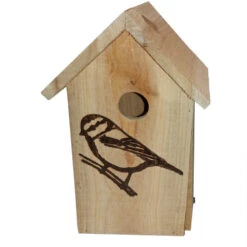 Nistkasten aus Kiefernholz in verschiedenen Farben mit Meisenmotiv