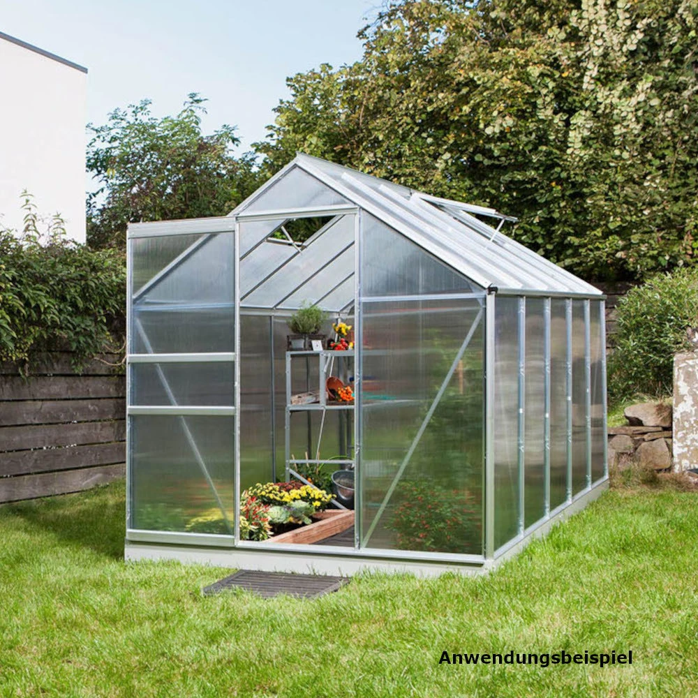 Vitavia Gewächshaus Venus 321 x 195 x 207 cm 6,2 m² mit Aluminiumrahmen, 4 mm Hohlkammerplatten und Fundamentrahmen