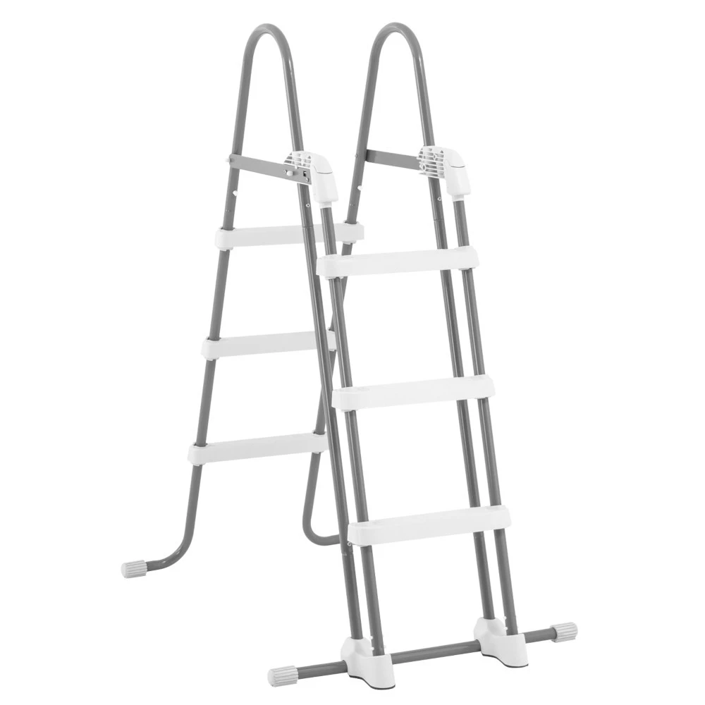 Die mitgelieferte Sicherheitsleiter besitzt, wie der Pool, eine Stahlkonstruktion mit Korrosionsschutz-Beschichtung.